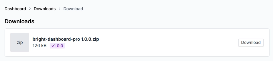 - Click the download link next to Bright Dashboard Pro to save the `.zip` file to your computer.