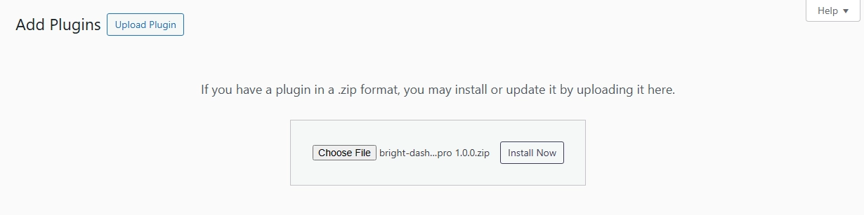 - Click Choose File and select the `bright-dashboard-pro.zip` file you downloaded.